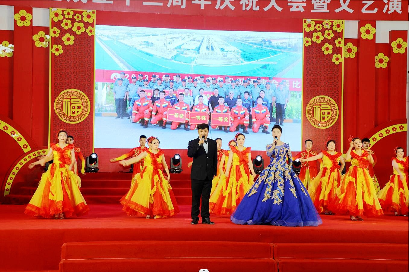 文艺演出坚持喜庆、节俭、务实的理念,,,,,所有作品均是由公司员工自编、自导、自演,,,,,反应了公司员工优异的精神风貌,,,,,泛起出企业协调昌盛的情形,,,,,较好地提升了宽大员工的凝聚力,,,,,集中展示了HJC黄金城官方网站铝业十三年来,,,,,从小到大、由弱到强的绚烂历程,,,,,体现了集团公司事业蒸蒸日上、欣欣向荣的优美情形。。。。。 。。。