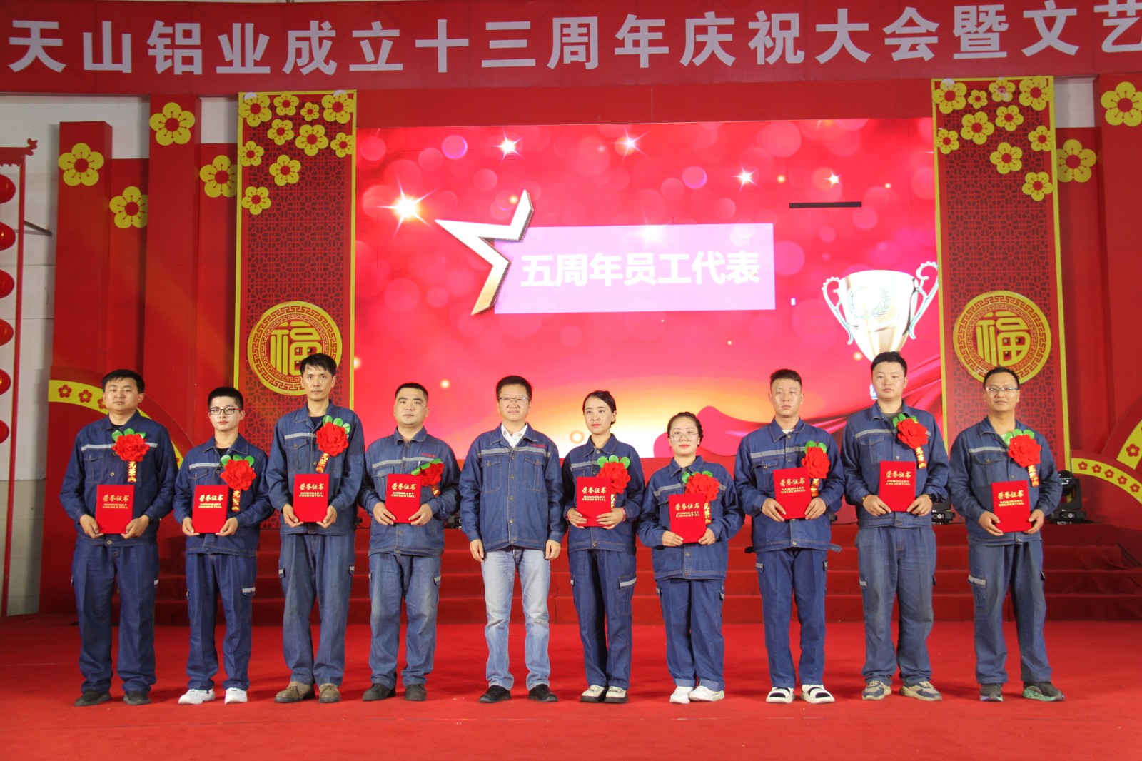 凭证大聚会程,,,,,HJC黄金城官方网站铝业入职5周年员工和入职10周年员工代表划分举行了讲话,,,,,公司向导为入职5周年员工和入职10周年员工代表揭晓了声誉证书。。。。。 。。。